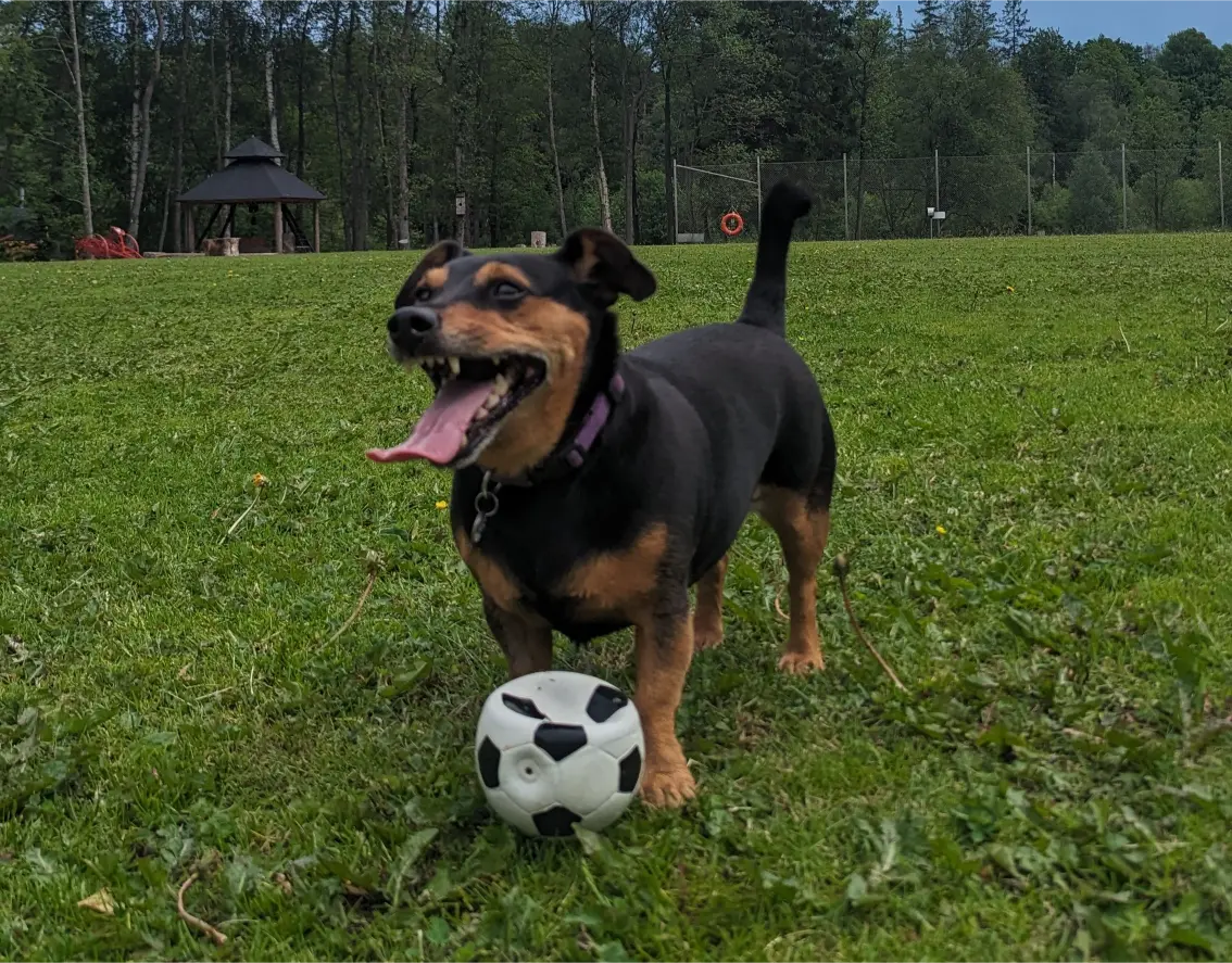 Tillsammans ser vi till att gården håller sig levande och full av glädje. Jag, Sjef, har ansvaret för att hålla alla glada och se till att vi tar våra dagliga skogspromenader.